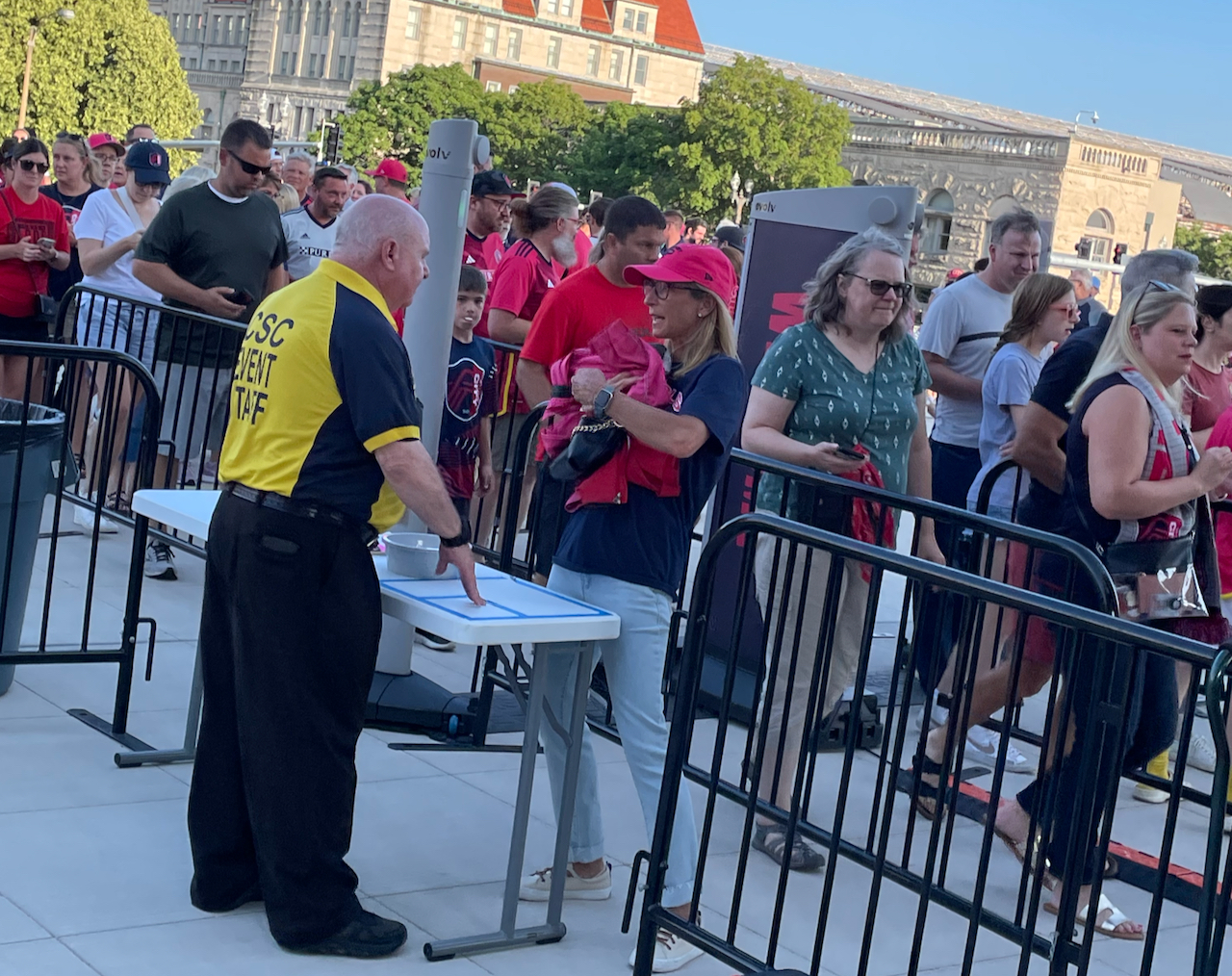 Being the most expensive option (several sources put the costs of an Evolv Express system at around $2,500 to $3,000 per month per gate, under a 4-year lease) apparently hasn’t slowed Evolv down, perhaps in part because its systems also eliminate lines rapidly, and allow venues to reduce staff and equipment footprint, which may offset the upfront costs. According to Evolv, one Express system can replace 10 traditional metal detectors. Our live reporting has found that Evolv Express gates can quickly scan large crowds, thanks in part to the fact that multiple people can walk by each gate at the same time.