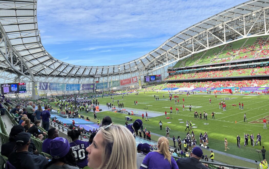 Stadium Tech Report field scout Lisa Farrell (a diehard Northwestern fan) was on hand live in Dublin for the game, and her early stymied attempts at Wi-Fi speedtests, while frustrating, turned out to be unrelated to the free-beer-and-food situation that came about later.